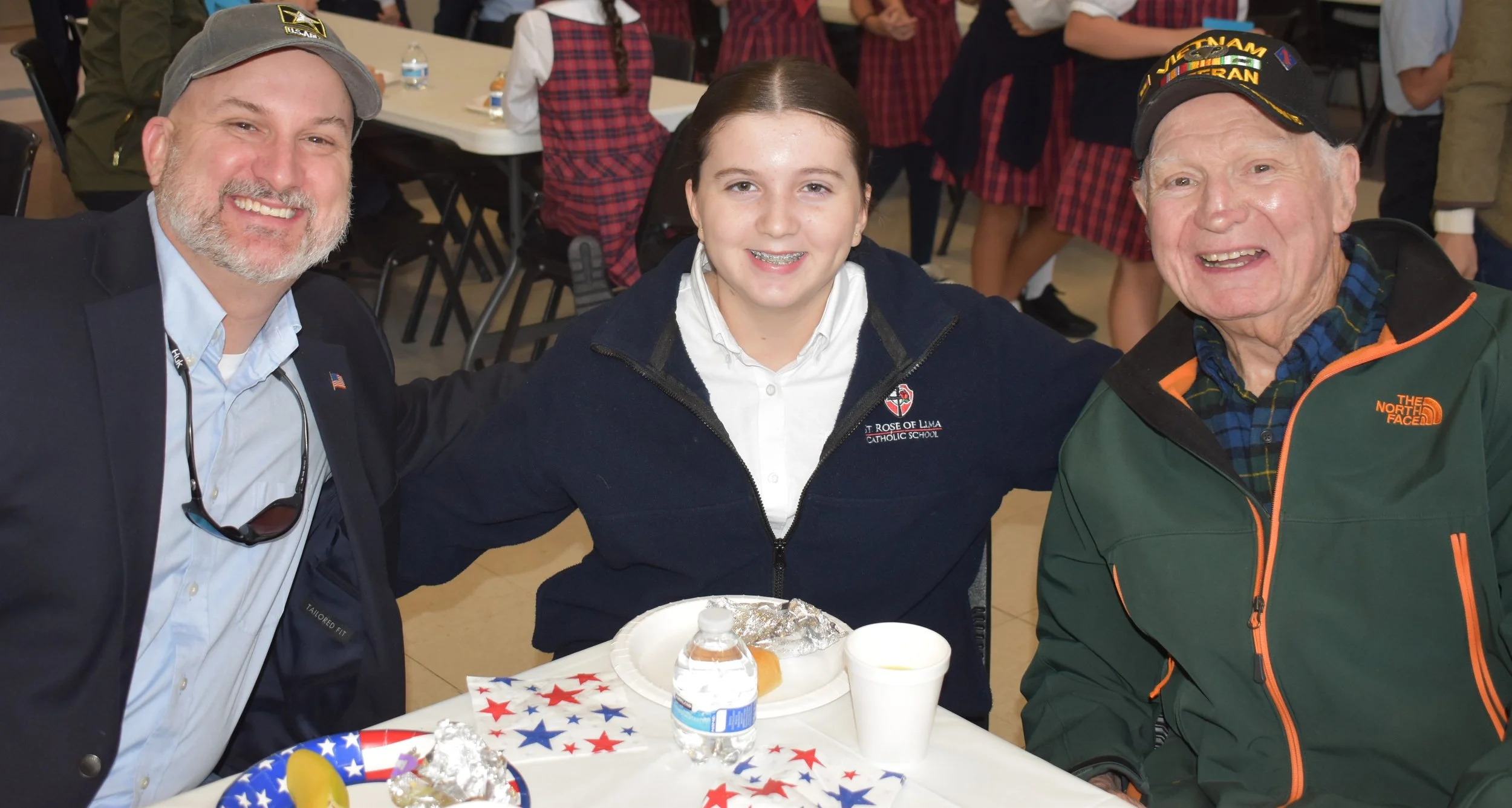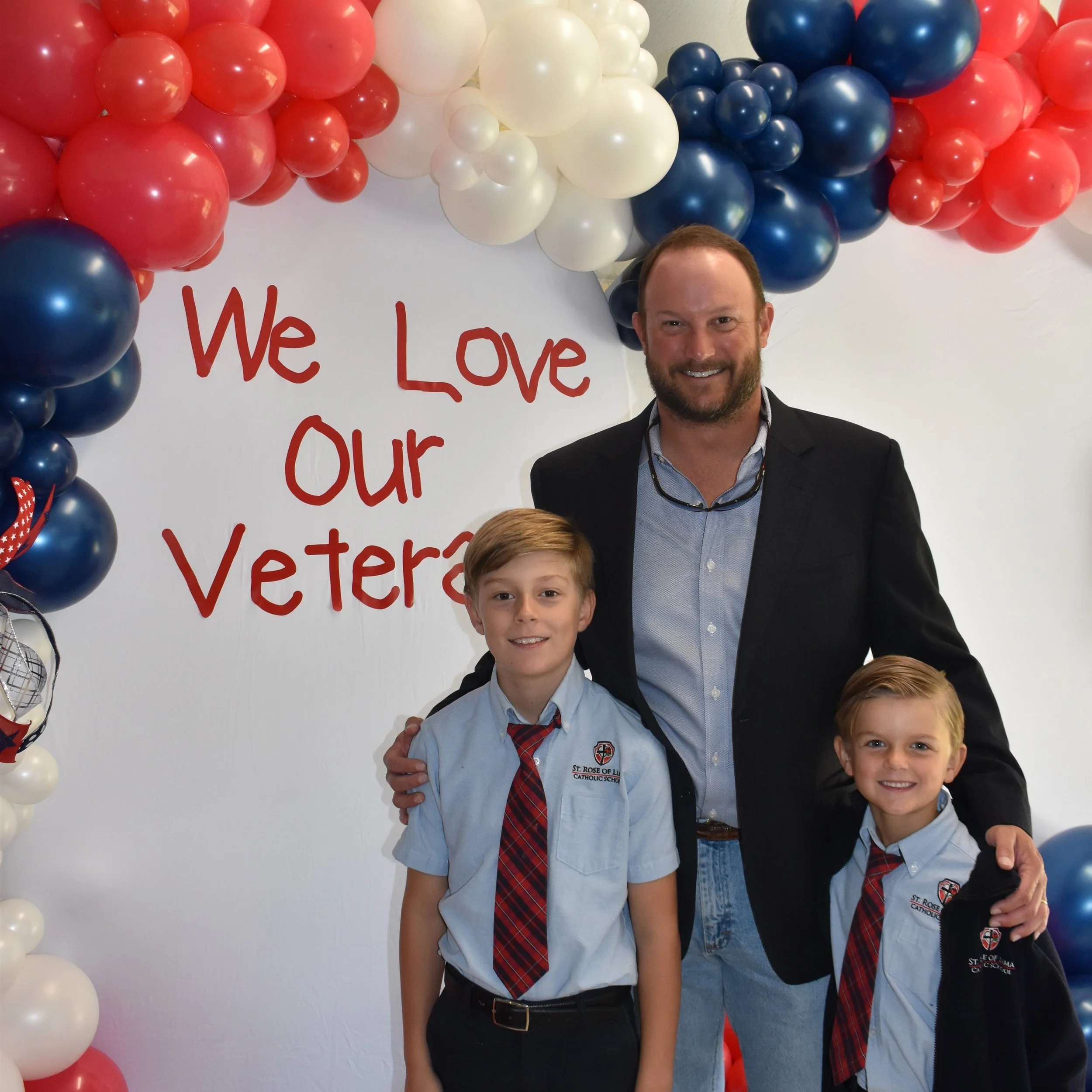 The St. Rose of Lima Catholic School Veterans Day Celebration is open to all veterans in the community. We honor the veterans and hear all their names and service experience. The students sing patriotic songs and thank the veterans for their service.